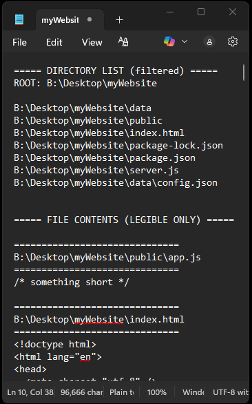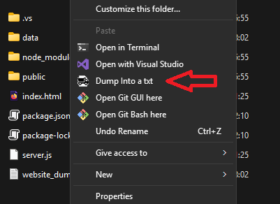 DumpToTxt is a small Windows utility that adds a right-click option to dump files or folders into a single readable .txt file on your Desktop.